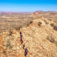 On this fully supported trek you walk with just a day pack to explore the best sections of this iconic desert trail: from the high ridge lines of the West MacDonnell Ranges you'll see the vast flood plains that form this ancient land. You'll be dwarfed by the immensity of Ormiston and Serpentine Gorge and soothed by their idyllic waterholes. You'll be amazed by dramatic colour changes in the rock formations at Simpsons Gap and Standley Chasm... and to top it all of you'll climb to the lofty peak of Mt Sonder to watch the sunrise (1,380m).